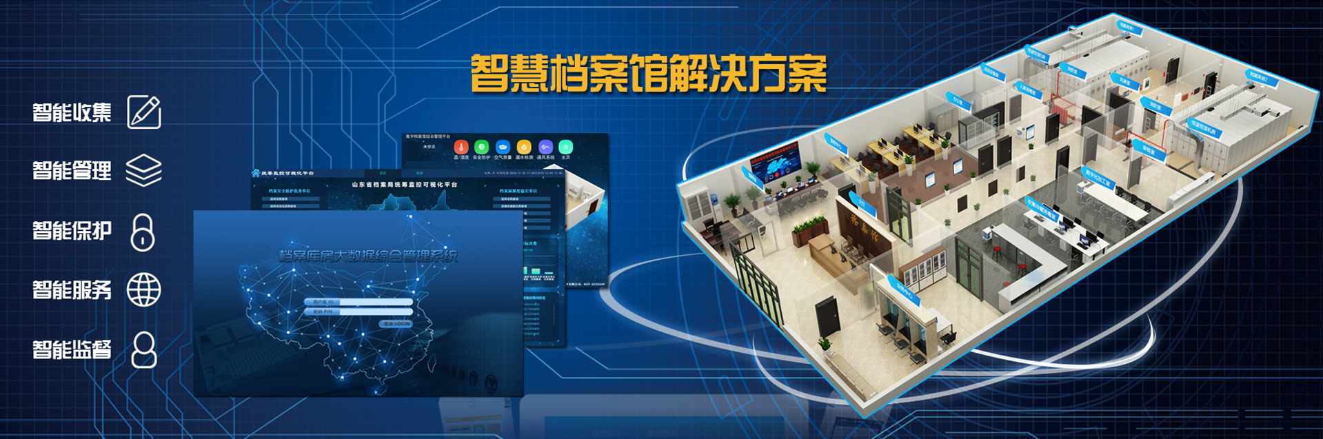 國韻根據(jù)山東省委宣傳部檔案管理的實際需求,為其設(shè)計建設(shè)了檔案庫房智能化綜合管理系統(tǒng),該系統(tǒng)將溫濕度自動測控、智能防火、智能防盜、消毒滅菌等檔案保護(hù)功能集成于綜合管理平臺,實現(xiàn)了檔案保護(hù)管理的智能化。該項目改善了山東省委宣傳部檔案庫房的環(huán)境,強化了對檔案的管理和保護(hù)。